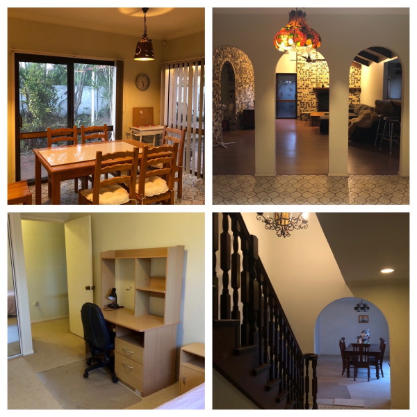 We have a master bedroom available in a freestanding clean house. The house is furnished and located in a quiet area and next to a park with plenty of car spaces.