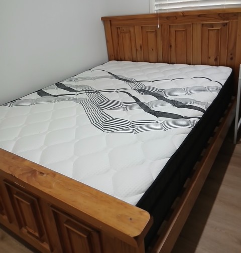 2. 퀸사이즈 침대 _ 매트리스 사이드 테이블 2개 포함 $300