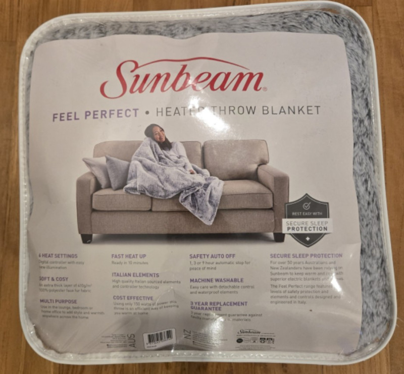 Sunbeam Feel Perfect Faux Fur Heated Throw Blanket Grey, Secure Sleep Protection, Auto-Off, 6 Heat Settings, Fast Heat Up, Machine Washable