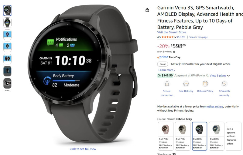 Garmin Venu 3S, GPS Smartwatch, AMOLED Display, Advanced Health and Fitness Features, Up to 10 Days of Battery, Pebble Gray Garmin Venu 3S 팝니다. $250 불에 팝니다. 픽업은 맥그레이서 입니다. 연락 주세요.