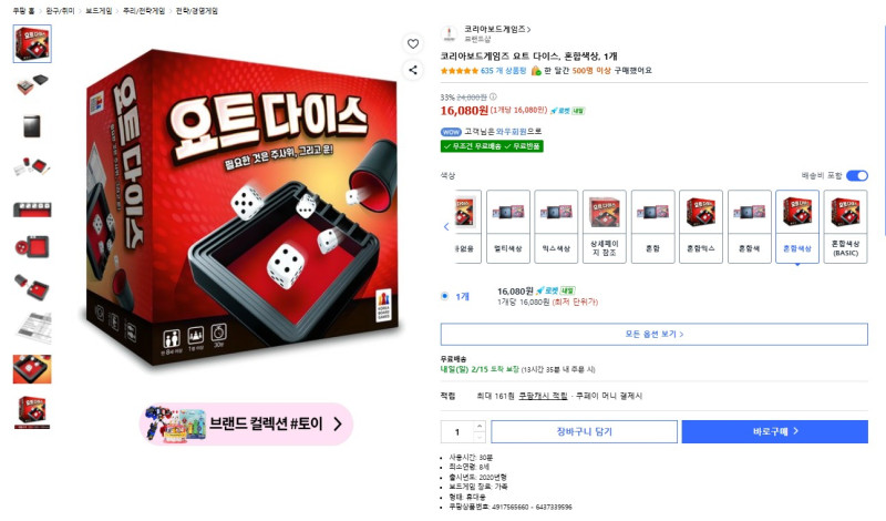 그리고 요트다이스 보드게임은 비닐포장도 안뜯긴 새제품이에요.