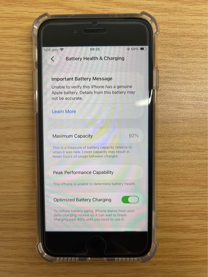 스크래치 없이 상태 매우 좋으며 배터리 성능 92%입니다.
