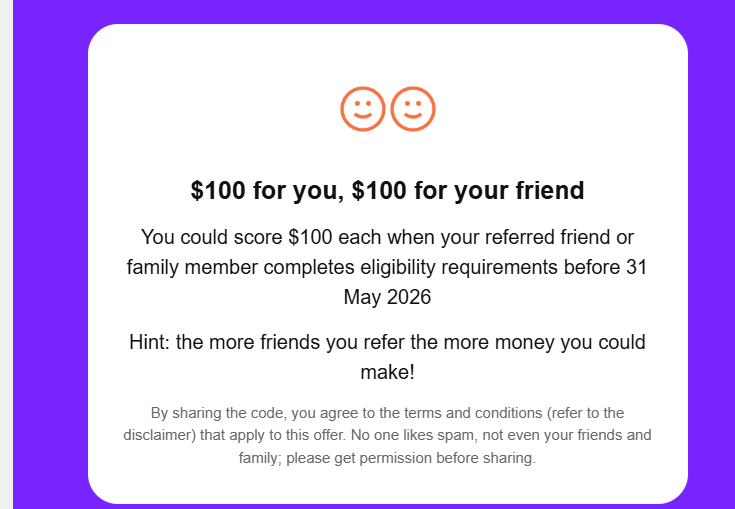 ???? 必须填写推荐码(Referral Code)才能获得奖励! ????