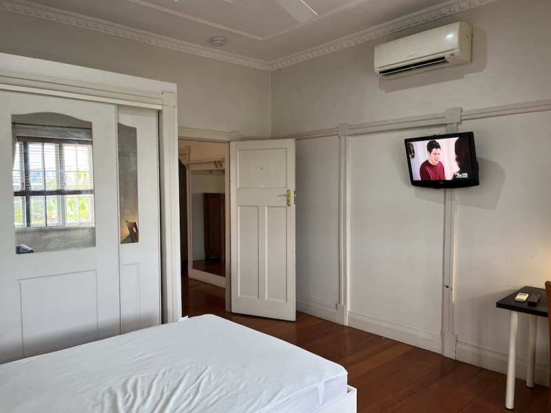 3,一个小单间配单人床,书桌椅,衣橱,电视 空调 电扇,city views.