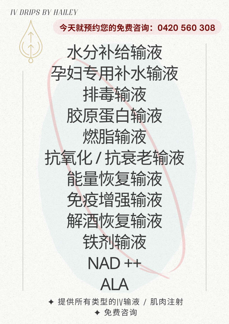 ✦ 提供所有类型的IV输液 / 肌肉注射