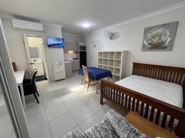 This Self-contained Studio flat is the integration with bathroom, kitchen, study and living area. and it is in the house dwelling style.