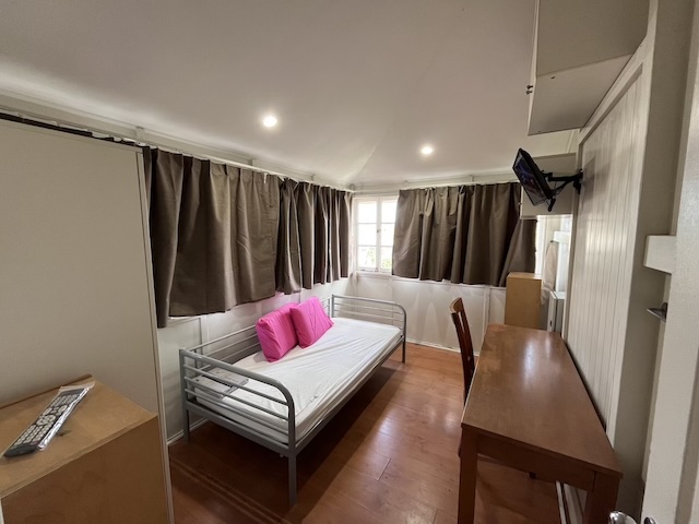 // the small room with a single bed, desk & chair, wardrobe.A/C,Fan,TV, WiFi. great city view. avialble now.