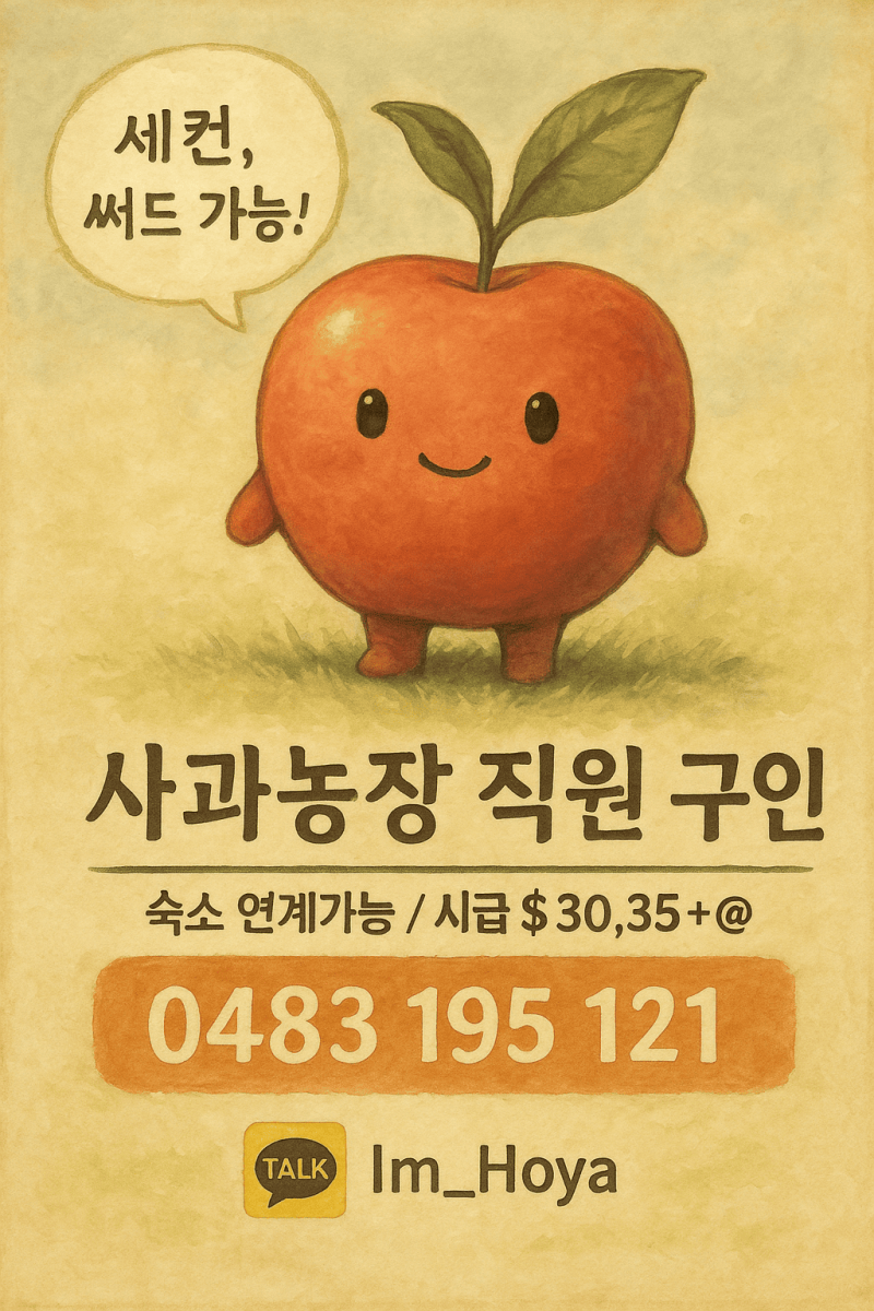 [스탠소프] (세컨,써드 가능) 사과 팩킹장에서 직원을 모집합니다!