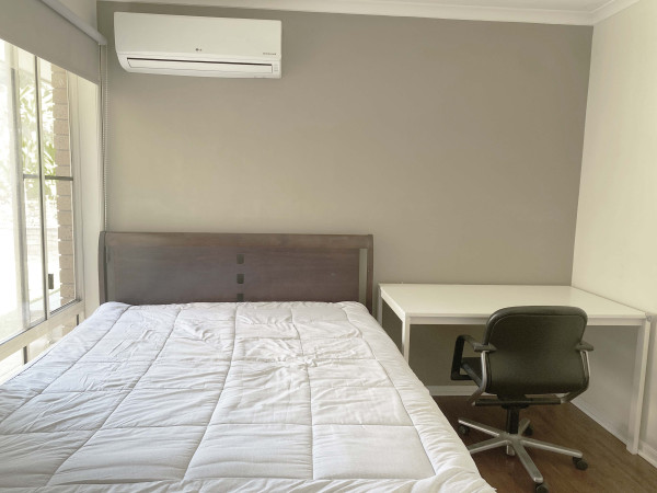 방 소개를 해드리자면, built in robe 잇구요, Queen 침대, 책상, 의자 배치되어 있구요, 이제 곧 여름인데, 방에 에어컨 설치되어있습니다. 집이 높은곳에 잇고 통풍이 좋아서 답답하지 않게 지내실수 있습니다.