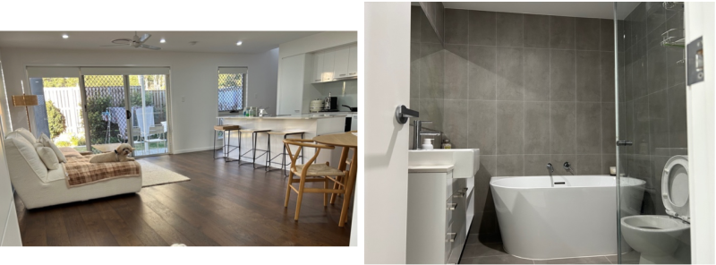 Eight Mile plans버스 터미널 건너편에 위치한 방 4개 화장실 3개, 수영장 있는 로치델 신축 타운하우스 여자만 사는집에서 독방 쉐어1명을 구합니다.
