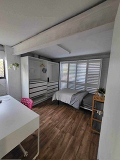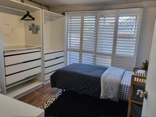 이층 집 아랫층에 꾸며진 독채이며 주인 집과 완전히 분리된 공간입니다. 방 두개, 부엌, 화장실 욕실 그리고 커다란 사이즈 거실 있구요. 옆 방에 한국인 여자분 한분 하고만 쉐어 허시면 됩니다.