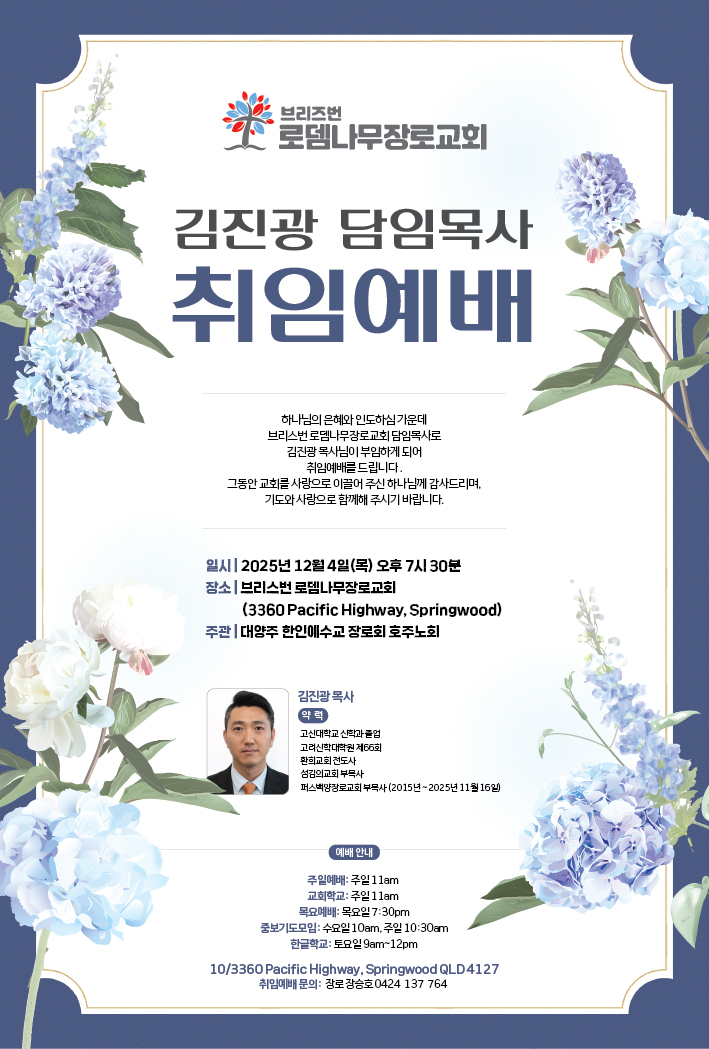 브리스번 로뎀나무장로교회 담임목사 취임예배
