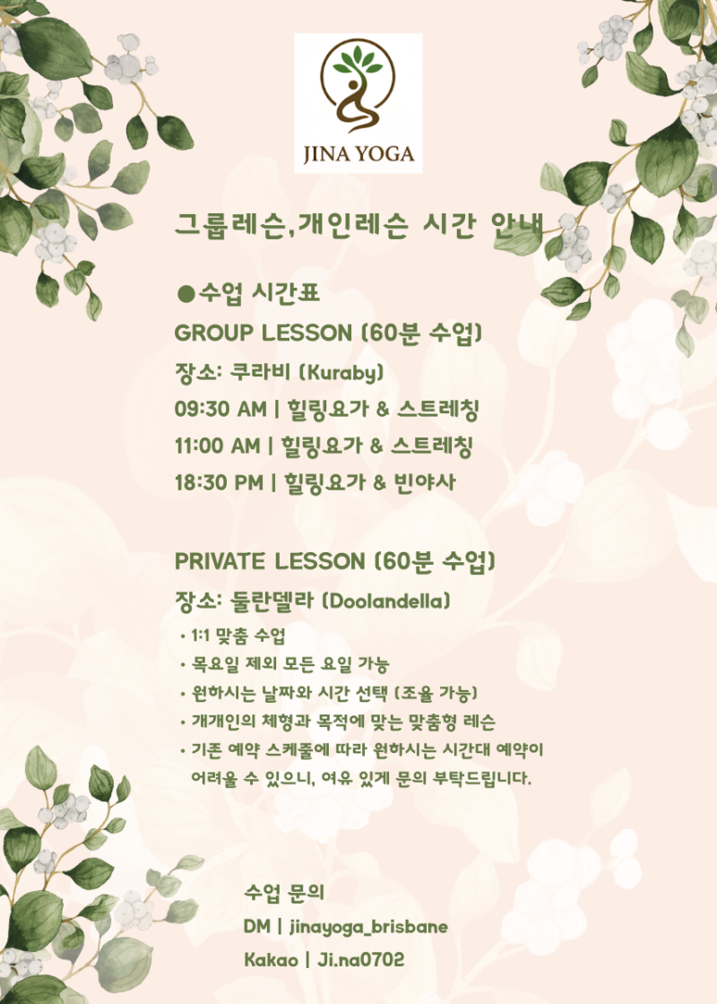 수업 문의: DM @jinayoga_brisbane