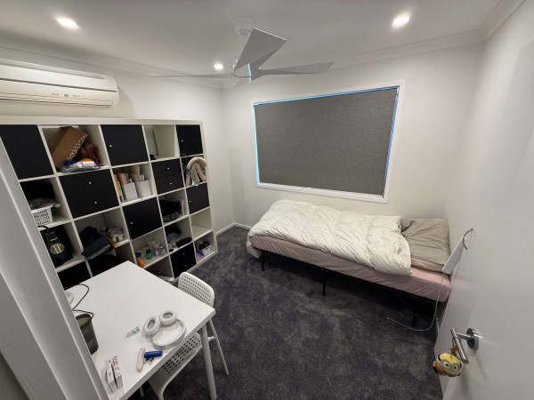 퀸베드 세트, 엑스트라 메트리스, 실링팬, 빅 월워드로브, 4단 드로어, 선풍기, 데스크, 체어, 스탠드등이 있는 깔끔한 독방 입니다.