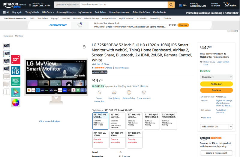 [팝니다] LG 31.5인치 스마트 모니터 판매합니다