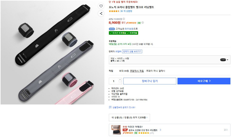 러닝벨트 (블랙, M사이즈)- 10불