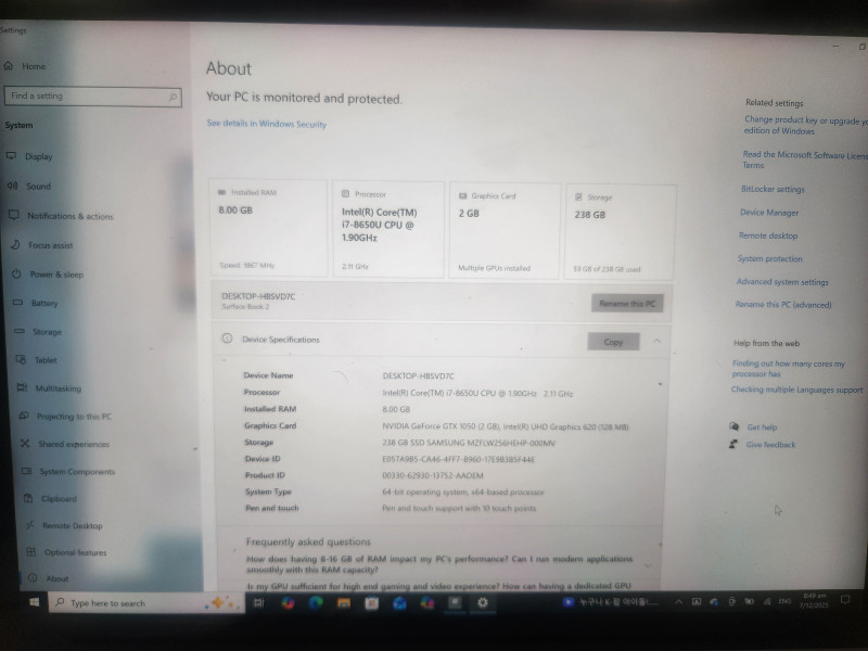 [팝니다] Ms 서피스북2 노트북 팔아요