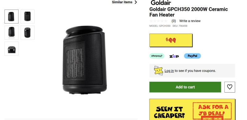 Goldair GPCH350 2000W Ceramic Fan Heater