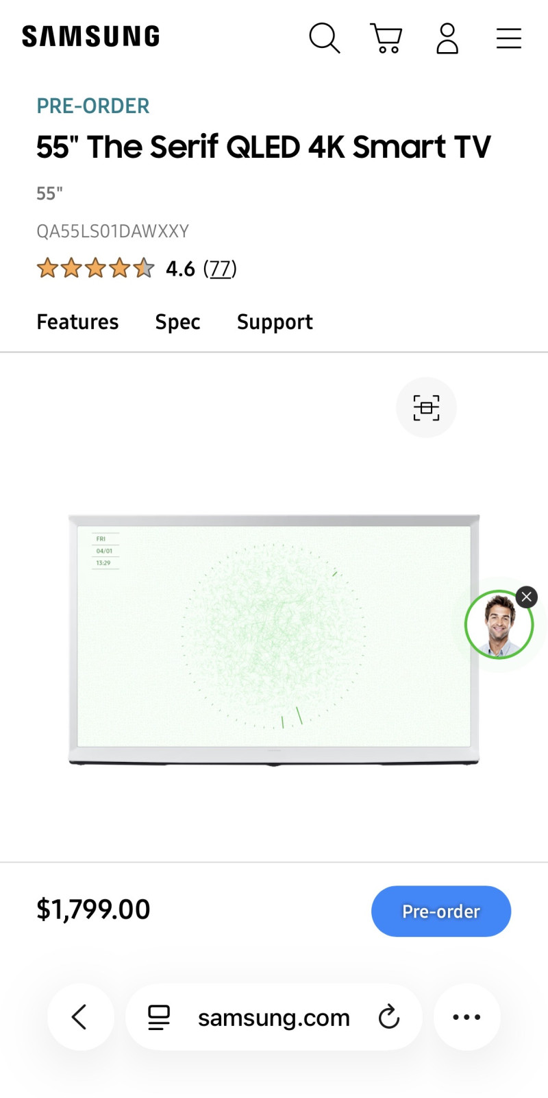 55" The Serif QLED 4K Smart TV - 1100불