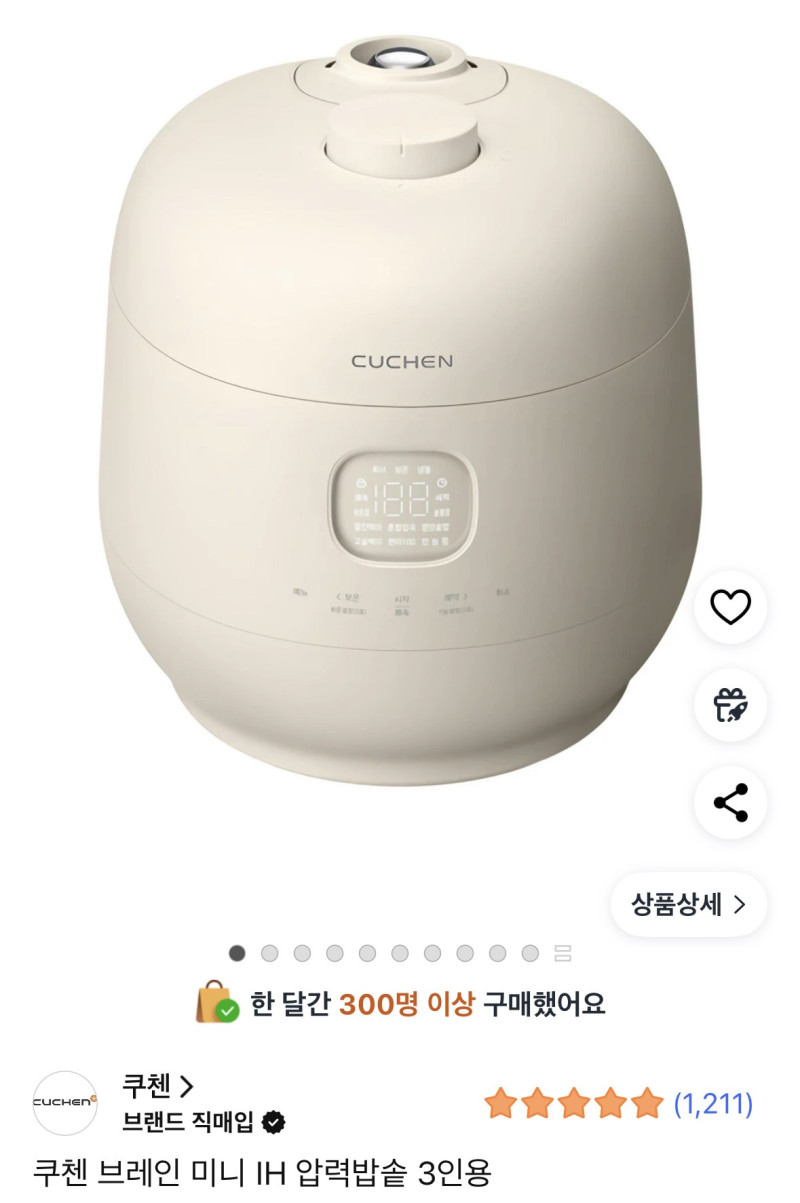 [팝니다] 쿠첸 브레인 미니 IH 압력밥솥 새상품 판매합니다