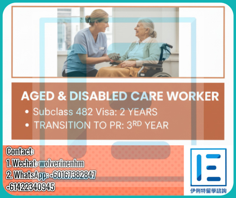 [Brisbane] Aged Care Worker崗位,走482 勞動協議渠道,2年后轉186