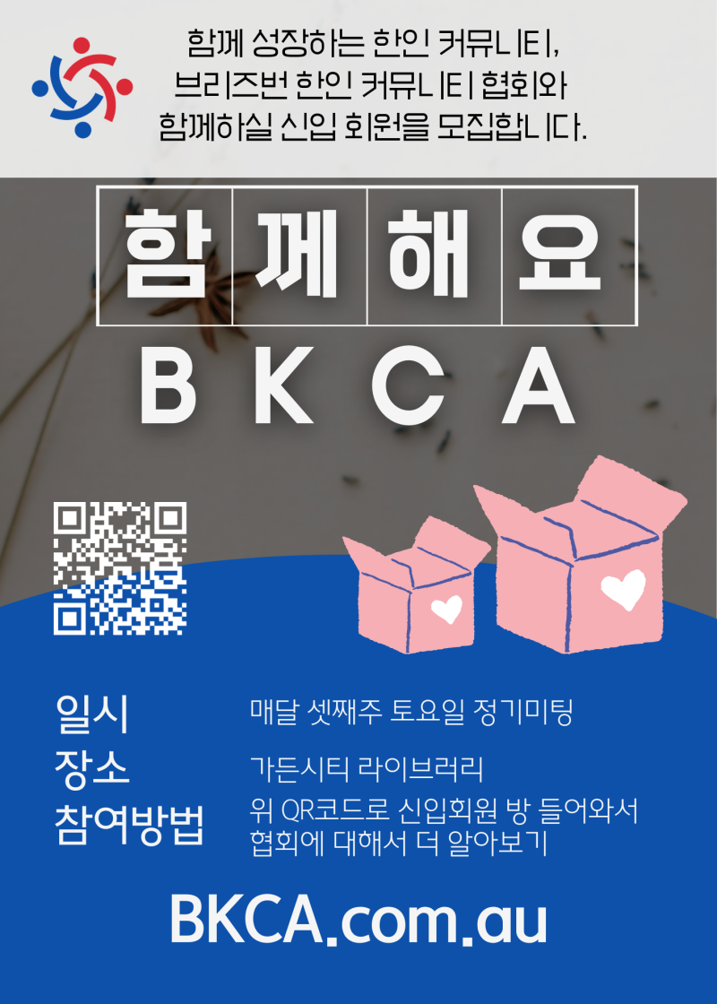 브리즈번 한인 커뮤니티 협회(BKCA)와 함께하실 신입 회원을 모집합니다.