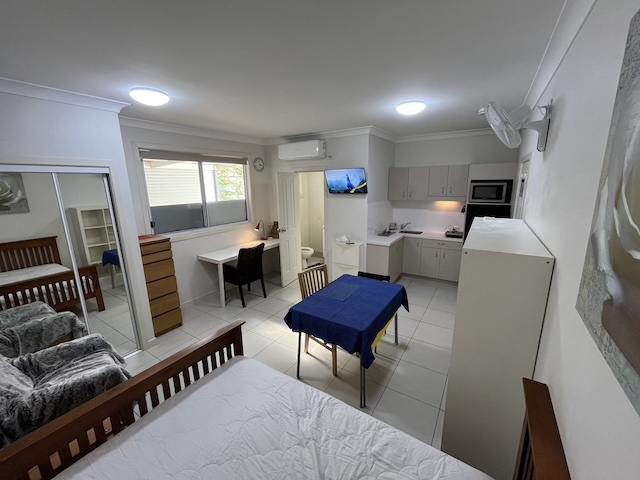 This Self-contained Studio flat is the integration with bathroom, kitchen, study and living area. and it is in the house dwelling style.