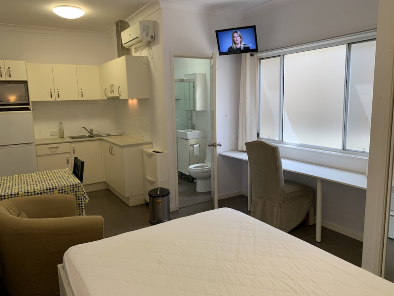 [City] self-contained Studio w FF A/C bills. 1P Woolloongabba