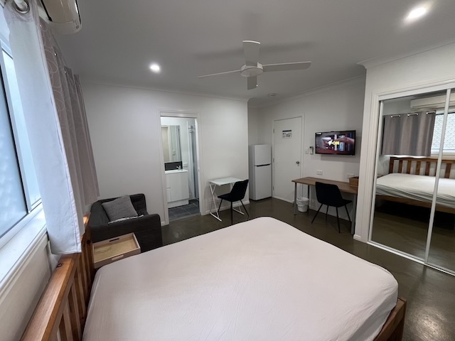 Big size En-suite room with own bathroom, build-in, double bed, desk, fridge. A/C,TV.