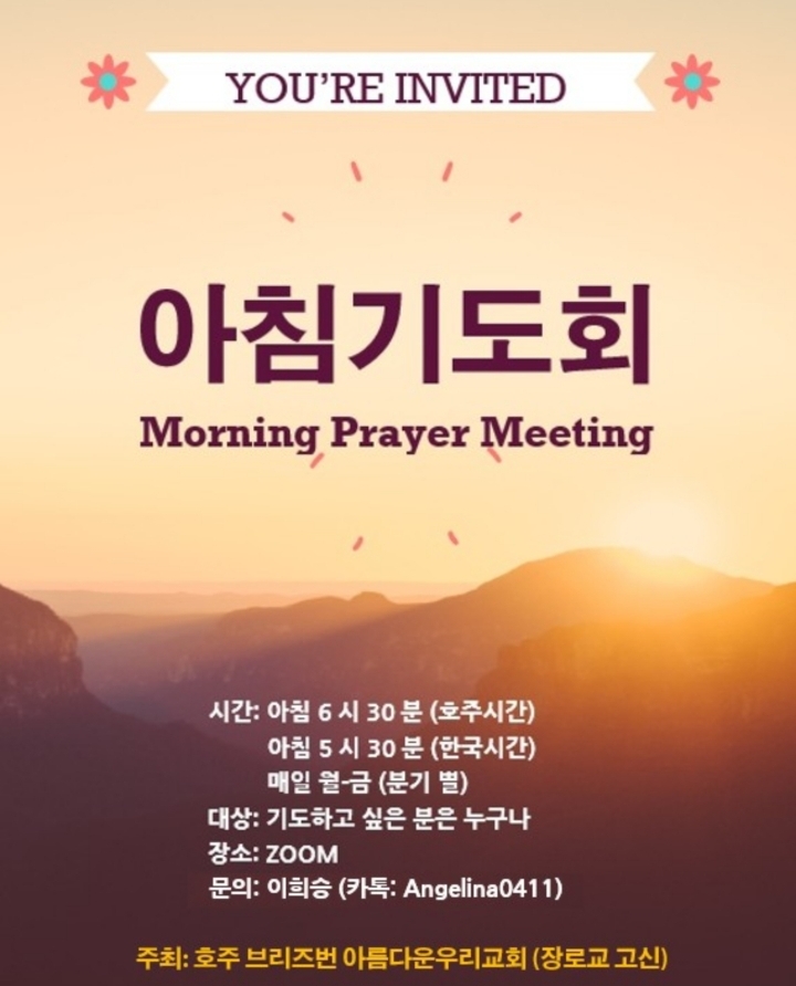 호주뿐만아니라 미국 뉴질랜드 한국 열방에 계신 분들과 매일 함께 기도하고 있습니다.