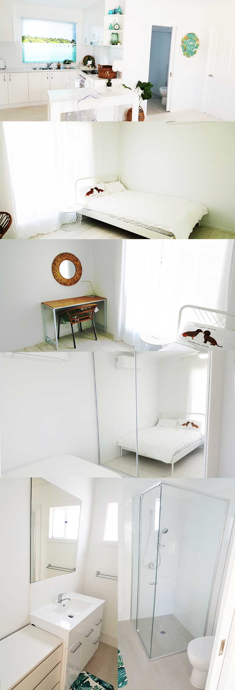 - Room with a fully new furnished double bed, double mirror wardrobe, desk, chair, ceiling fans, separate air conditioner & heating,