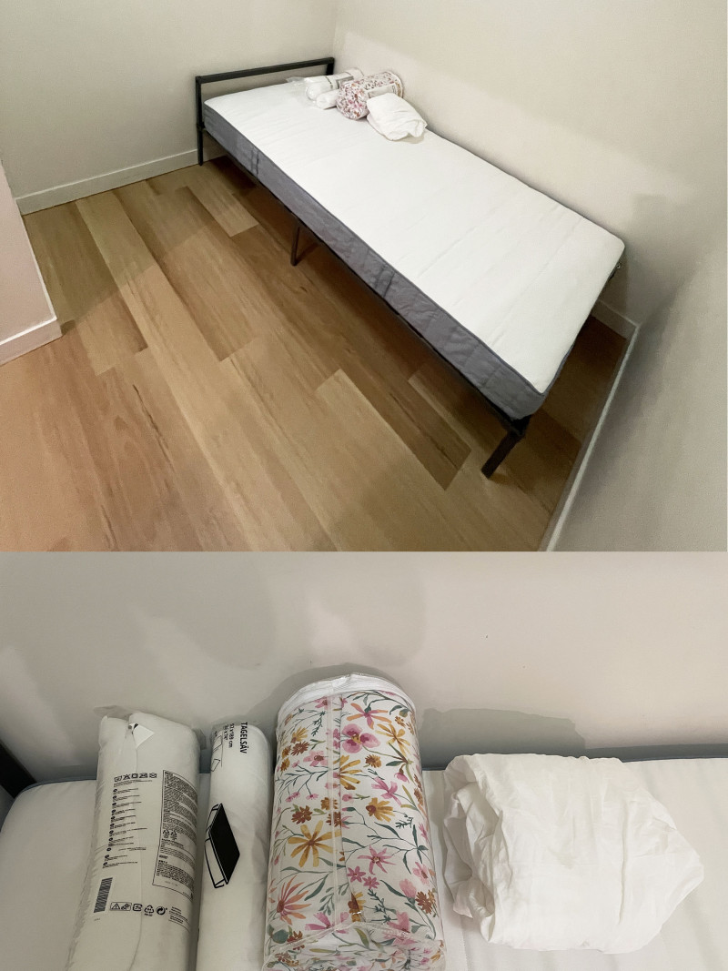 싱글배드, 베드 사이드 테이블, 침구류 (사진에 보이는 가구류, 인형제외^^)
