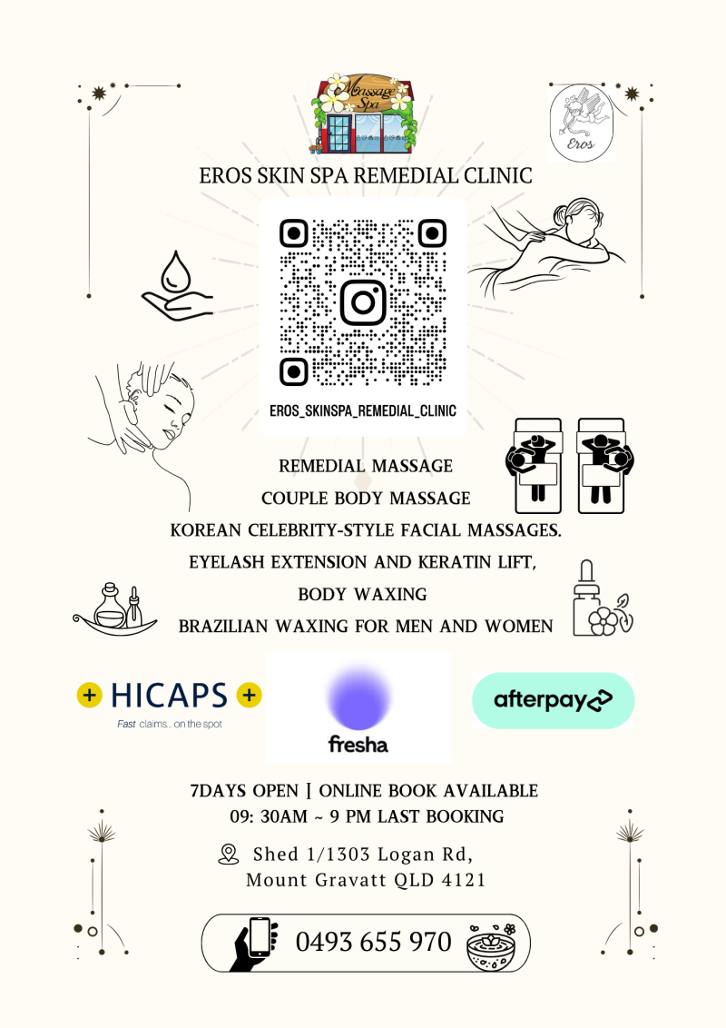 저희와 함께 에스테틱샵 에서 일 하고 싶으신 분 이라면 브리즈번에 위치한 Body Blossom / Eros Skin Spa Remedial Clinic 으로 환영합니다.