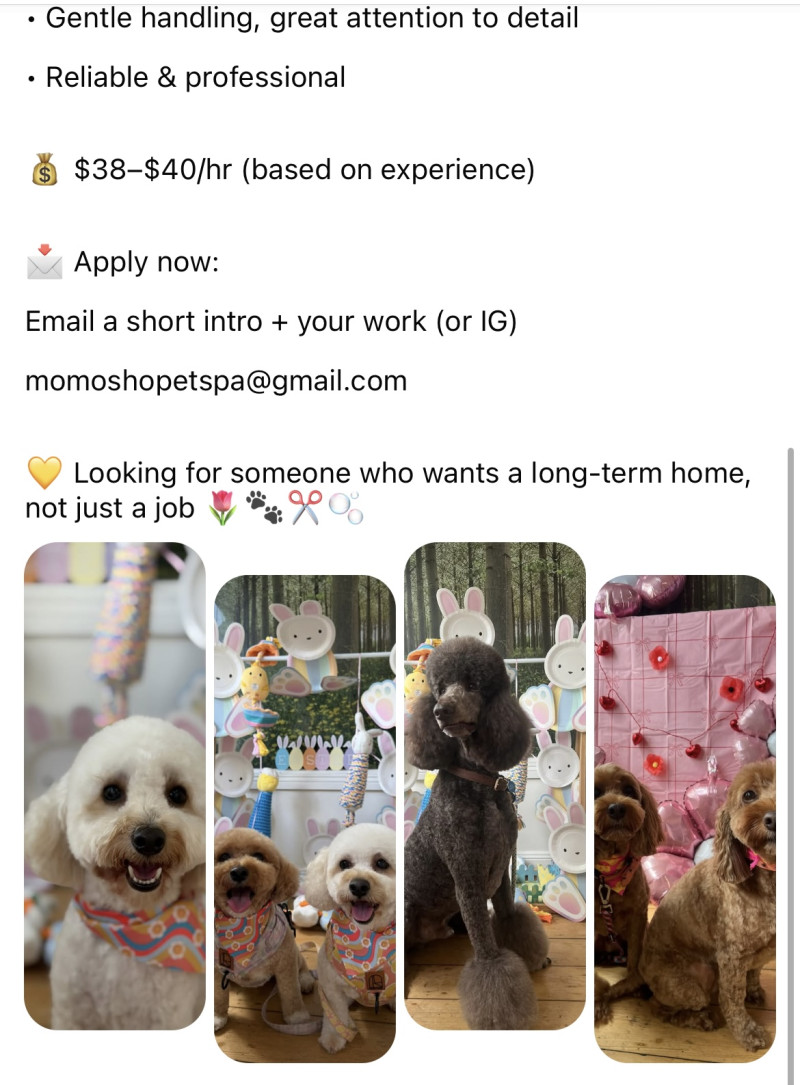 [구인] 브리즈번 애견미용사(그루머) 구합니다.