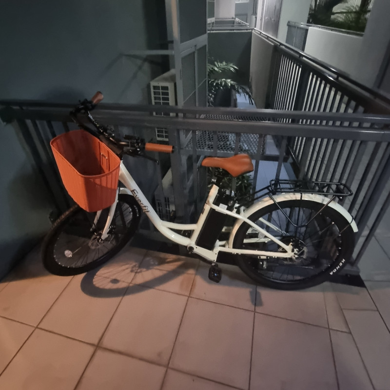 사진에서 앞쪽 바구니와 앞바퀴 머드는 떼어 사용했고요, 뒤에 우버가방도 달아놓았는데 버렸을지 그대로 갖고 있을지 모르겠습니다.