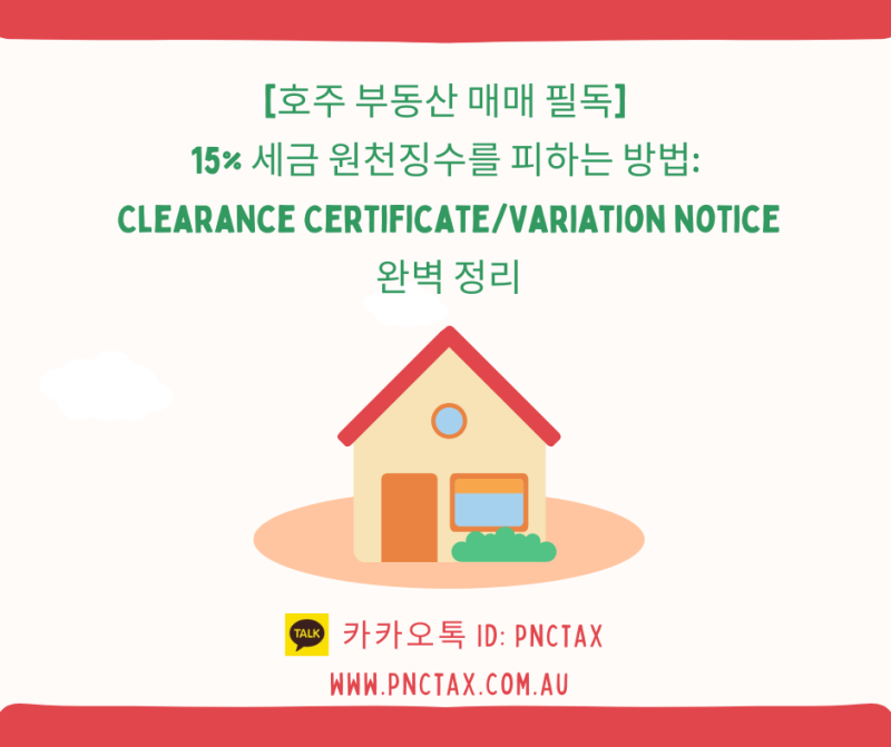 ▶▶▶호주세금환급:: [호주 부동산 매매 필독] 15% 세금 원천징수를 피하는 방법: Clearance Certificate/Variation Notice 완벽 정리◀◀◀