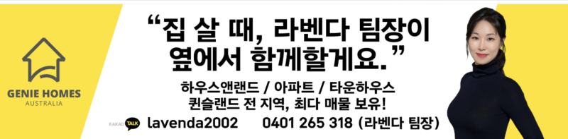안녕하세요!! 호주 브리즈번 부동산 지니홈즈 라벤다 팀장입니다!!