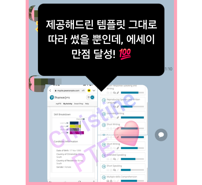 ☆과외 후 9일만에 #pte오버럴58 for #졸업비자